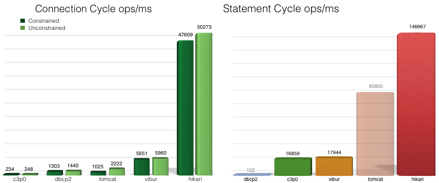 - ์คํ๋ง ๋ถํธ 2.0 ์ดํ๋ถํฐ๋ ์ปค๋ฅ์ ํ์ ๊ด๋ฆฌํ๊ธฐ ์ํด HikariCP๋ฅผ ์ฑํํ์ฌ ์ฌ์ฉํ๊ณ ์๋๋ฐ ๋ค๋ฅธ ์ปค๋ฅ์ ํ ์คํ์์ค์ ๋น๊ตํ์ ๋, ์ฑ๋ฅ์ ์ผ๋ก ์ผ๋ง๋ ๋ฐ์ด๋ ์ง ์๋์ ๊ทธ๋ฆผ์ ์ฐธ๊ณ ํ์!