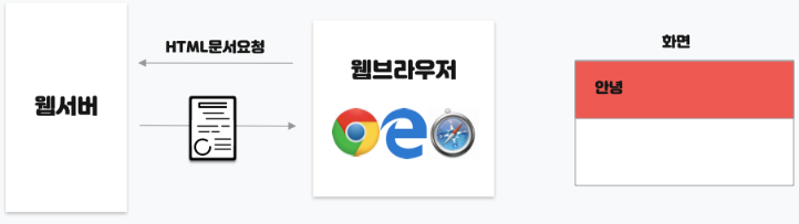 - ์๋ฅผ ๋ค์ด, ์ธํฐ๋ท ์ฃผ์์ฐฝ์ ์ฃผ์๋ฅผ ์ ๋ ฅํ๊ฑฐ๋ ๋งํฌ๋ฅผ ํด๋ฆญํ๋ ๋ฑ ์ฌ์ฉ์๊ฐ ์ด๋ค ์์ฒญ์ ํ๊ฒ ๋๋ฉด ๊ทธ์ ๋ง๋ HTML, CSS, JS, ์ด๋ฏธ์ง ๋ฑ์ ํ์ผ๋ค์ด ์ ๋ถ ๋ค์ด๋ก๋๋์ด ๋ธ๋ผ์ฐ์ ์ ๋ ๋๋ง๋๋ค.