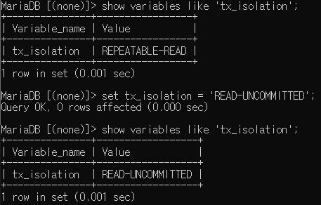 [์ฐธ๊ณ ] ํธ๋์ญ์ ๊ฒฉ๋ฆฌ ์์ค ์กฐํ ๋ฐ ์์ (MariaDB)